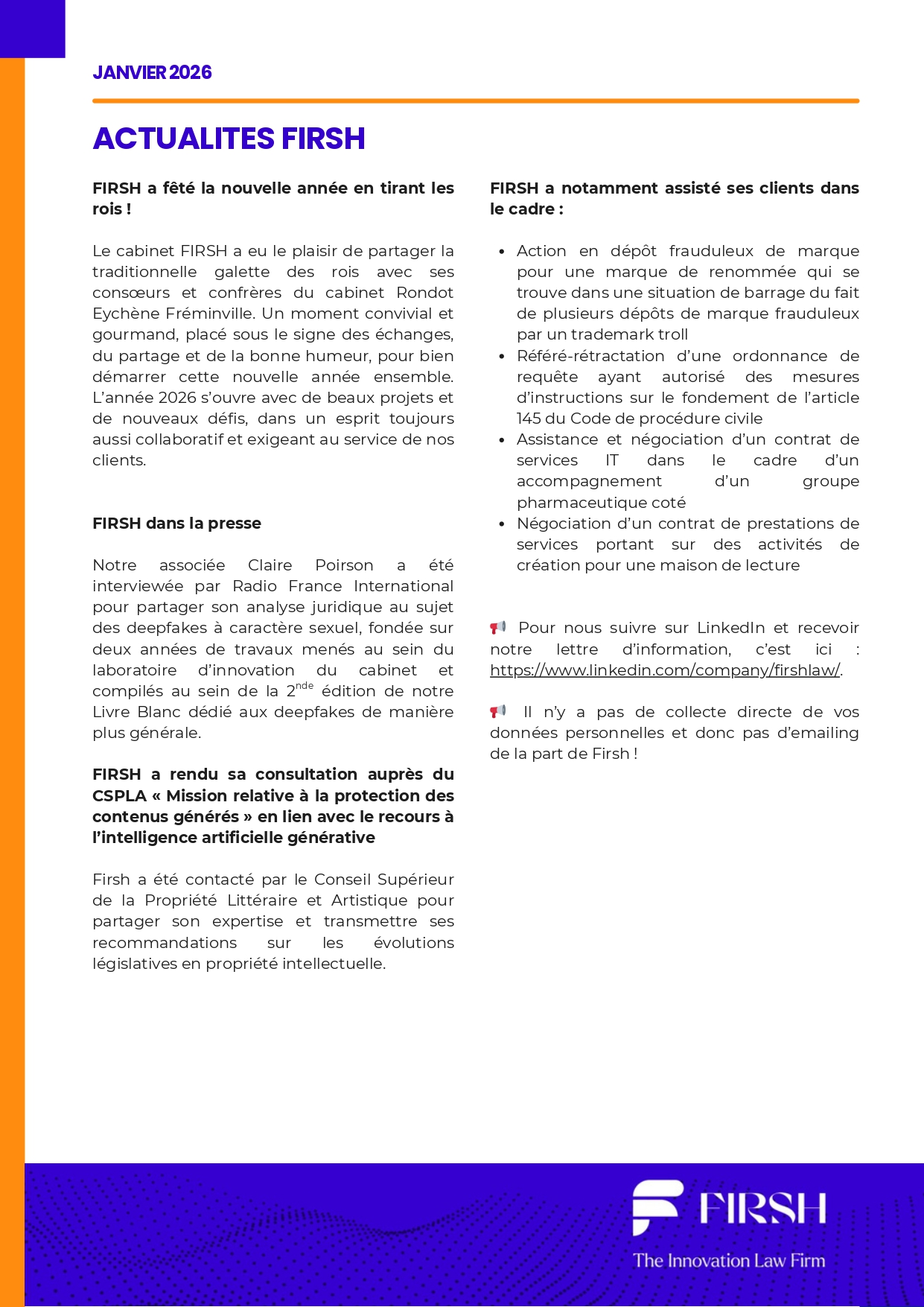 Newsletter Janvier 2026